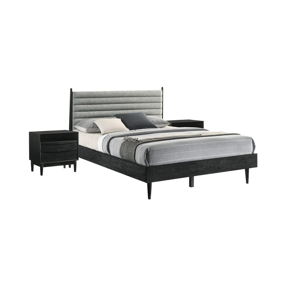 - VARIATIONS - The Artemio bedroom set is available in a walnut or black finish, gray upholstered headboard. The 3-piece configuration is available with a king or queen size bed and 2 nightstands. The 4-piece configuration includes a king or queen size bed, 2 nightstands, and 6 drawer dresser.
