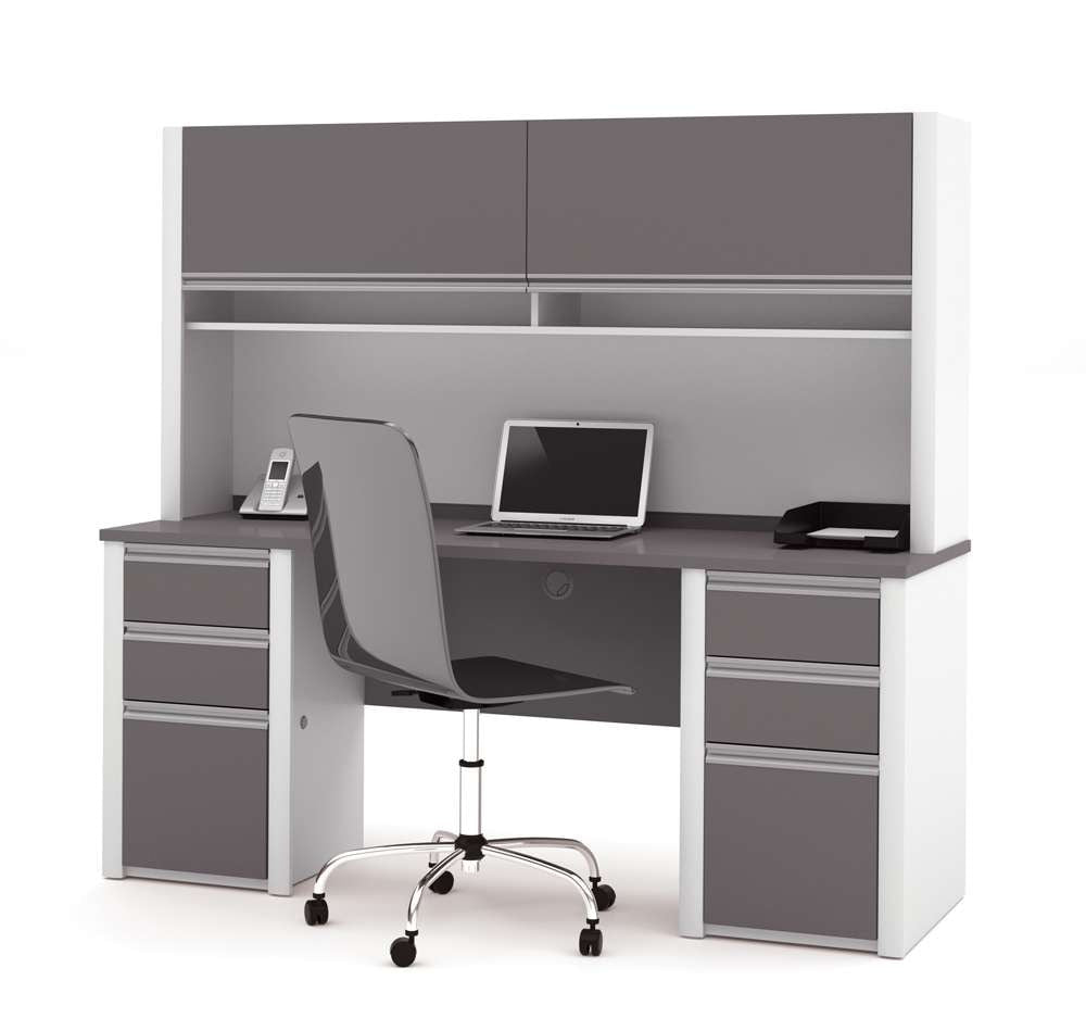 Bestar - Connexion 72W Credenza Desk with Two Pedestals and Hutch in Slate & Sandstone - 93860-59