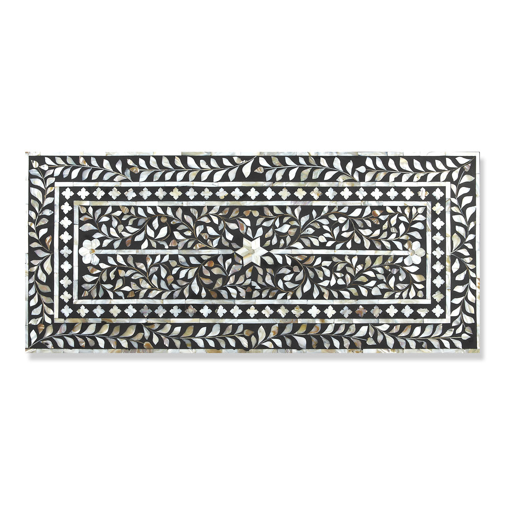 - Durably constructed using: Mango Wood, MDF, Resin, Mother Of Pearl