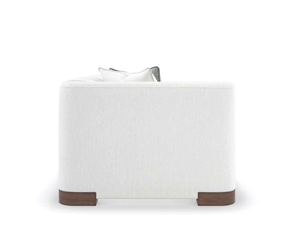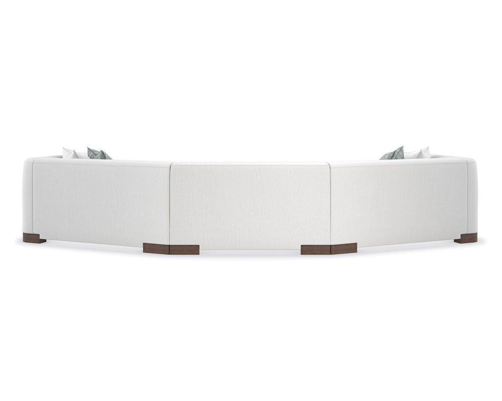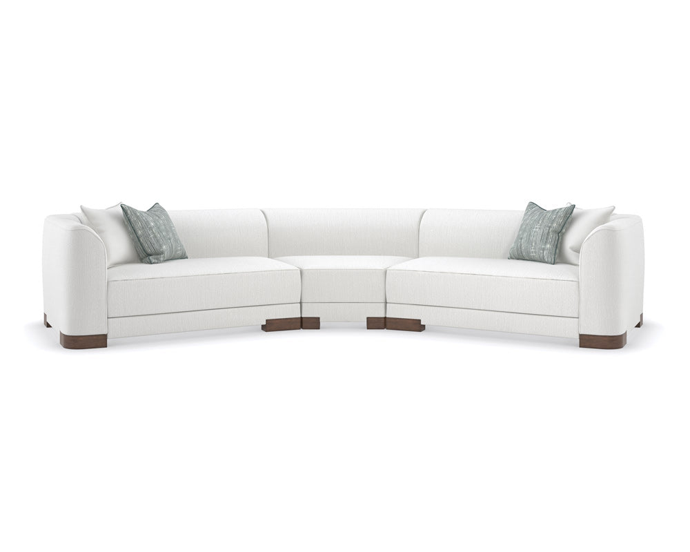 With multiple configurations to create a luxury lounging experience, this modular sectional sets a tranquil tone in a softly textured chenille performance fabric. Balancing clean lines with a subtle curve and rounded edges, its smooth silhouette rests on exposed wood feet in a warmly contrasting French Roast finish. Accent pillows add a tactile finishing touch in an aqua ottoman weave and a tone-on-tone woven geometric.