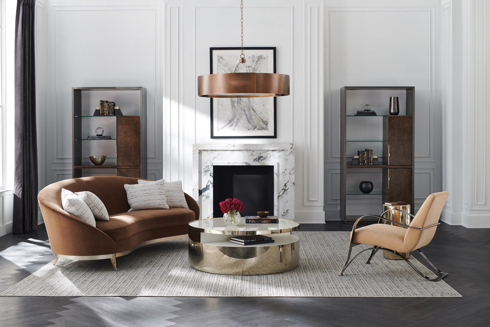 With a bold, yet simple shape, this modern accent table uses pure form and minimal materials to draw attention. The perfect pedestal for a beverage or vase, its sturdy stainless steel base is topped in our Signature Caracole Crà ¨me stone, and finished in a Whisper of Gold for added luxury and moments of reflection. Style solo, or group with our Round About short and tall tables in varying heights and diameters to create added interest and dimension.
