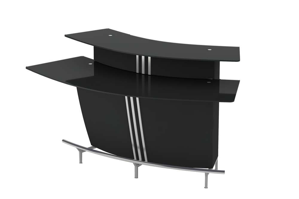 This Two Tiered Bar is stylish and contemporary with its curved design. Shelves and racks make it easy to store bottles and glasses inside the bar. Beautiful chrome accents and stainless steel footrest. It has 3 built-in shelves. The top shelf is equipped with a wire rack designed to store your stemware. This fabulous contemporary look will be the highlight at your next gathering. This bar is availableà in your choice of finishes in solid Black, Silver or White, to complement your home decor.