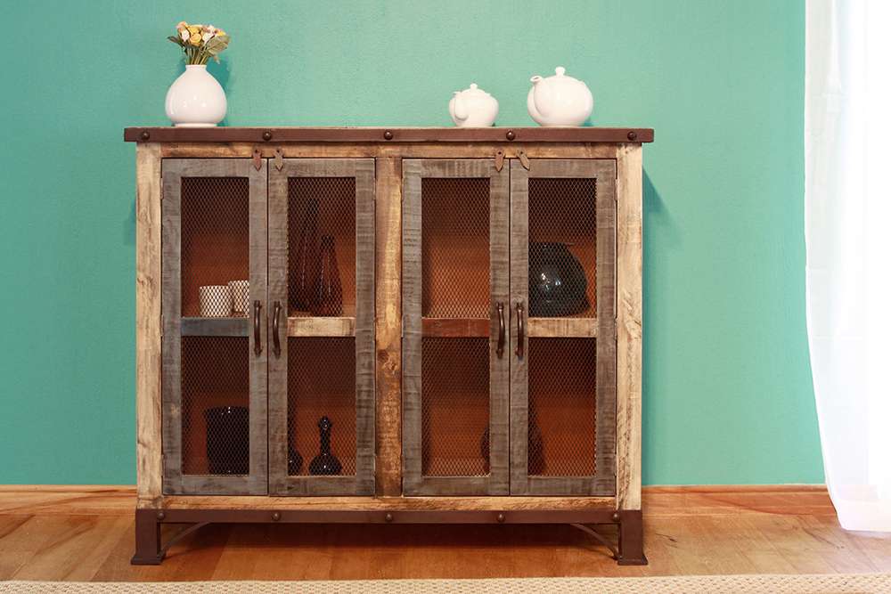 IFD - Antique Multicolor 48in Console w/4 Iron Mesh Door Panels & Middle Shelf - IFD969CONS-4MC