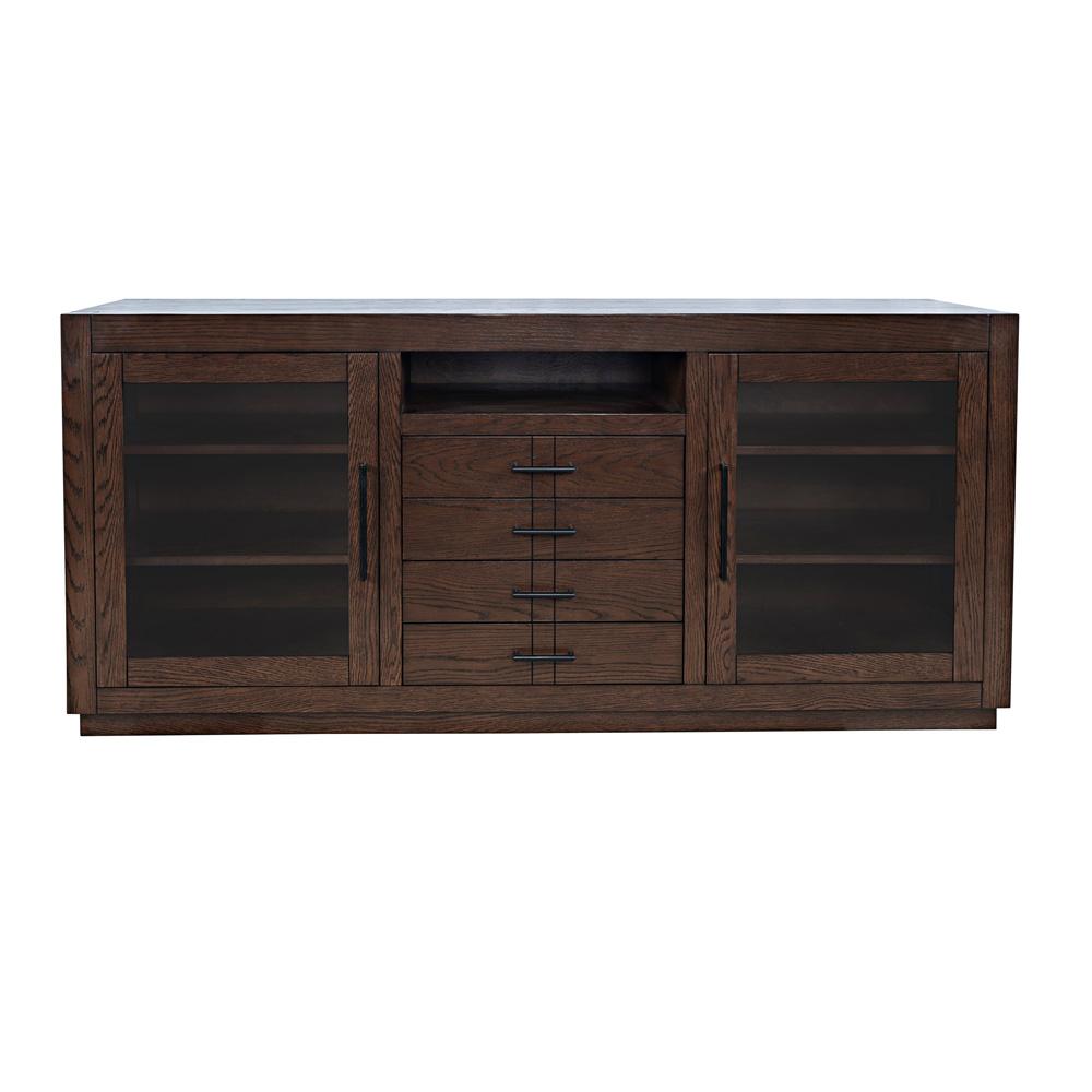 Jofran - Auburn Hills 70in Contemporary Media Console with Tempered Glass Doors, Drawers and Adjustable Shelves in Dark Oak - 2499-70