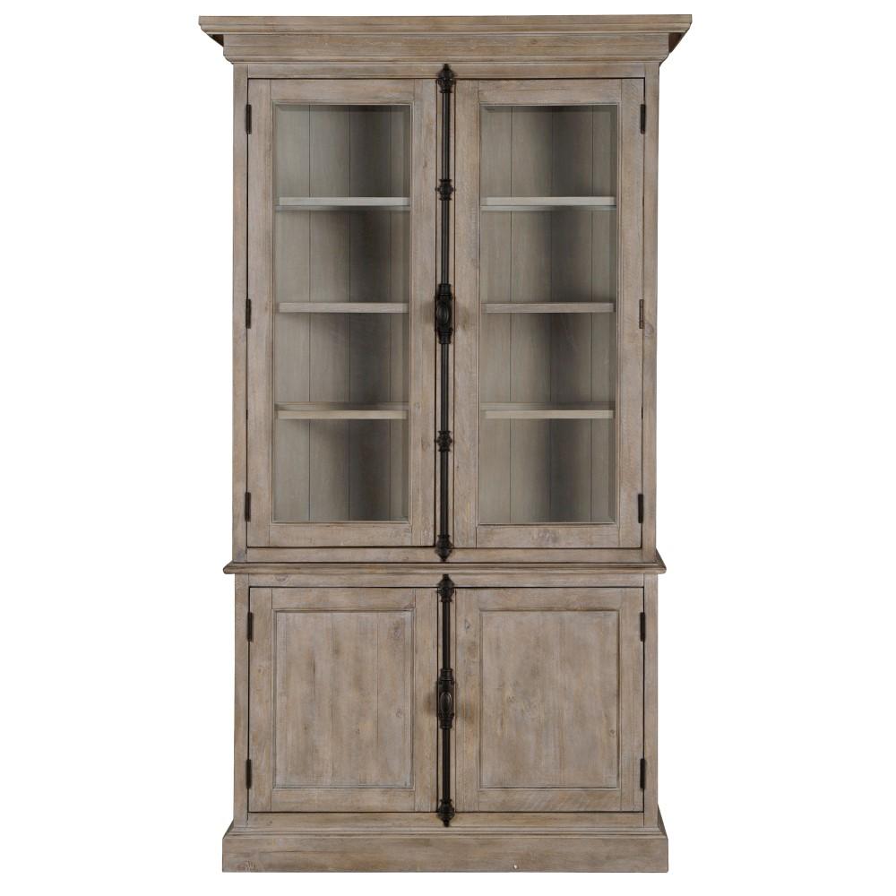 Gustavian influenced Tinley Park Dining Room creates charming ambiance in a soft Dovetail Gray finish. Set the perfect place setting at one of two round dining table sizes that features weathered pine solid tops resting atop open scrollwork bases or select the larger rectangular double pedestal carved scroll base table with two butterfly leaves and a handsome weathered bronze metal stretcher. The same gorgeous base and stretcher are featured on a hardworking counter table which can be paired with the slat back counter chair for multi-purpose dining and prepwork and entertaining. Use the dining chair height version of the slat back or handsome church pew style bench for seating guests while a stunning server features the open scroll fretwork overlaid on glass doors for gracious living.