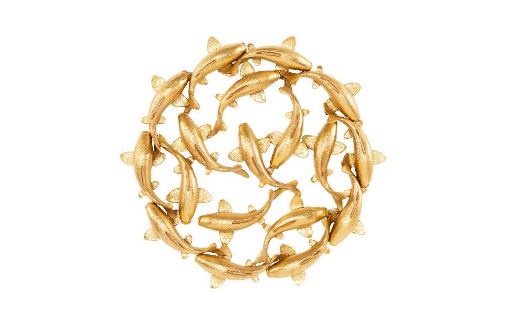 For centuries, koi fish have been used as living ornaments to illuminate exterior ponds and gardens with accents of brilliant colors. As symbols of affection, prosperity, and fortune, koi are believed to bring good luck and feelings of love to a household. The Gold Koi Wall Decor by Phillips Collection acts to serve as your own personal koi pond meant to be enjoyed from the comfort of your interior space. Made from artisan grade resin with a gold leaf finish, this intricate wall decor depicts a cluster of detailed koi fish swimming together in a circular pattern. This breathtaking piece will introduce a flow to your decor that encourages a meditative atmosphere and feelings of relaxation.