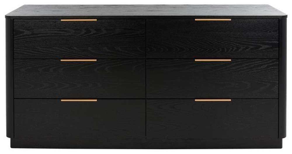 Safavieh - Couture - Gabrietta 6 Drawer Wood Dresser - Black - Gold - SFV2141B