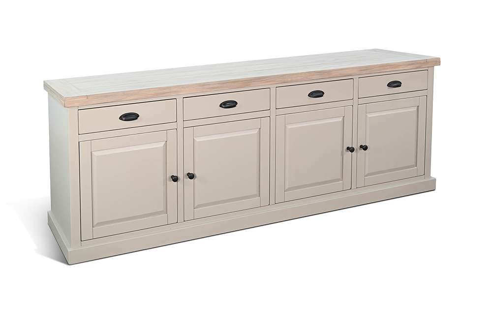 A versatile and stylish addition to your living or dining space that effortlessly combines modern design with practical storage. This server cabinet, featuring a sleek grey finish, adds a contemporary touch to your decor. With four spacious drawers and two cabinets, it provides ample storage for organizing your essentials. The drawers are designed for easy access, and the cabinets with adjustable shelves offer customizable space to accommodate various items. The clean lines and neutral color make this server an adaptable piece, blending seamlessly with different interior styles.